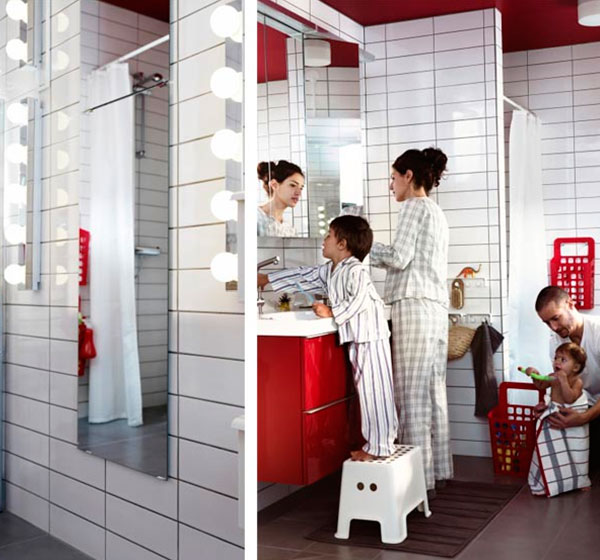 La situación se complica cuando hay niños en la casa. Muchos intentan instalar lavabos por debajo del nivel recomendado para un adulto. Este enfoque es fundamentalmente incorrecto: los padres se verán obligados a doblar la espalda constantemente, lo que aumenta la carga en la columna y conduce a problemas de salud. Por lo tanto, el producto debe instalarse a la altura de «adulto» y para que el niño compre soportes especiales, con la ayuda de los cuales podrá elevarse a una altura. El soporte permitirá al bebé lavarse y cepillarse los dientes cómodamente.